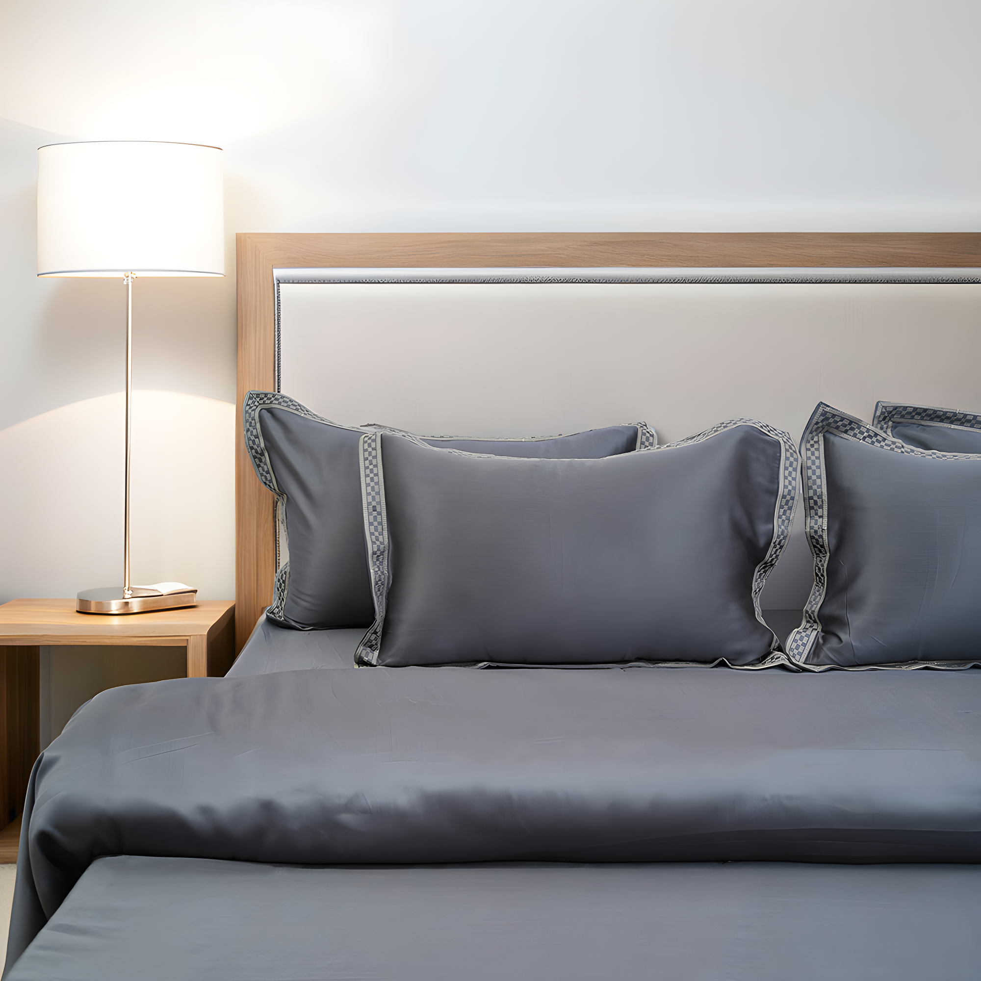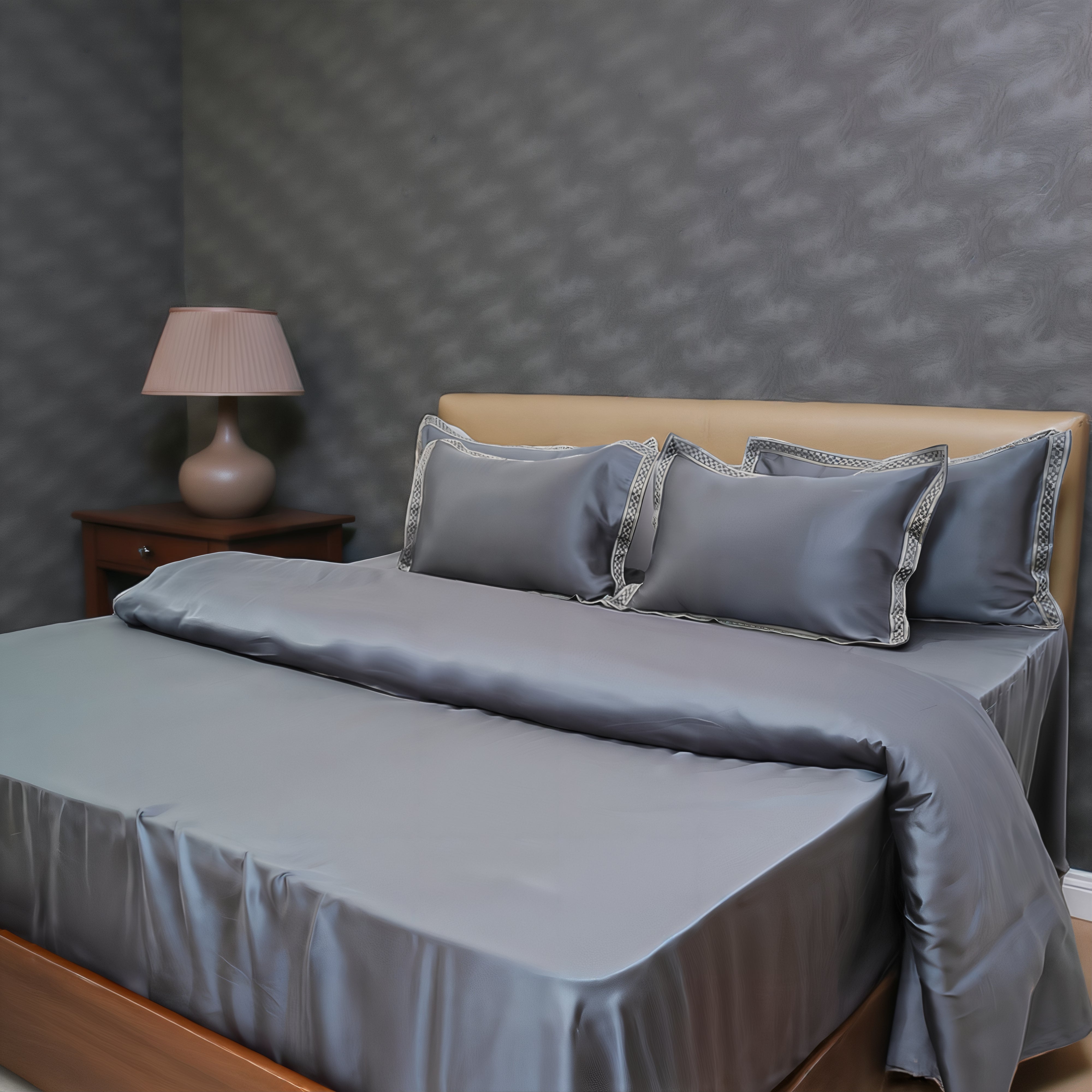 Sleek, bold, and undeniably sophisticated—the Premium Shine bedding set adds a modern edge to your bedroom. Crafted in a deep, lustrous tone with detailed border accents, this set blends luxury with contemporary style for a truly elevated sleep space.