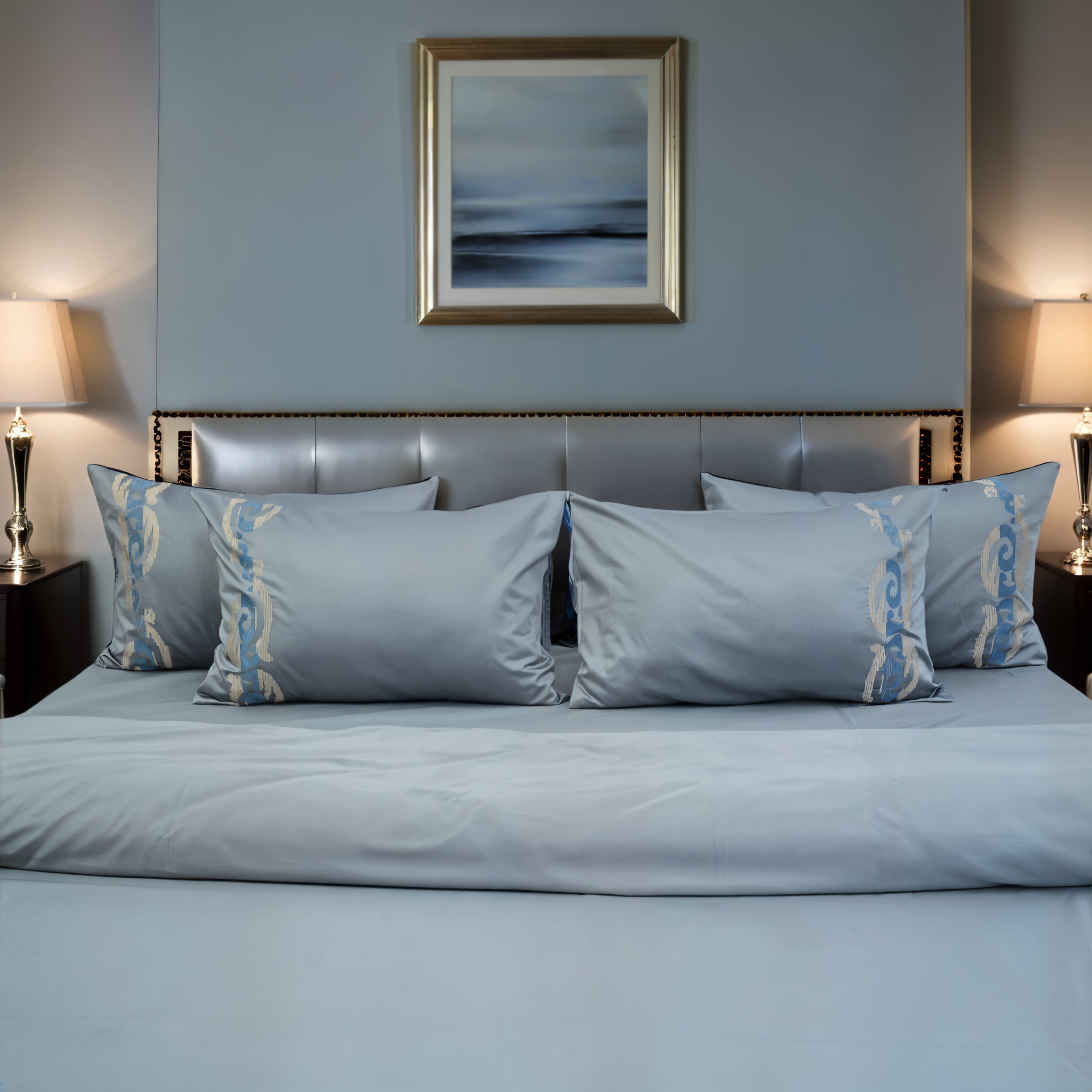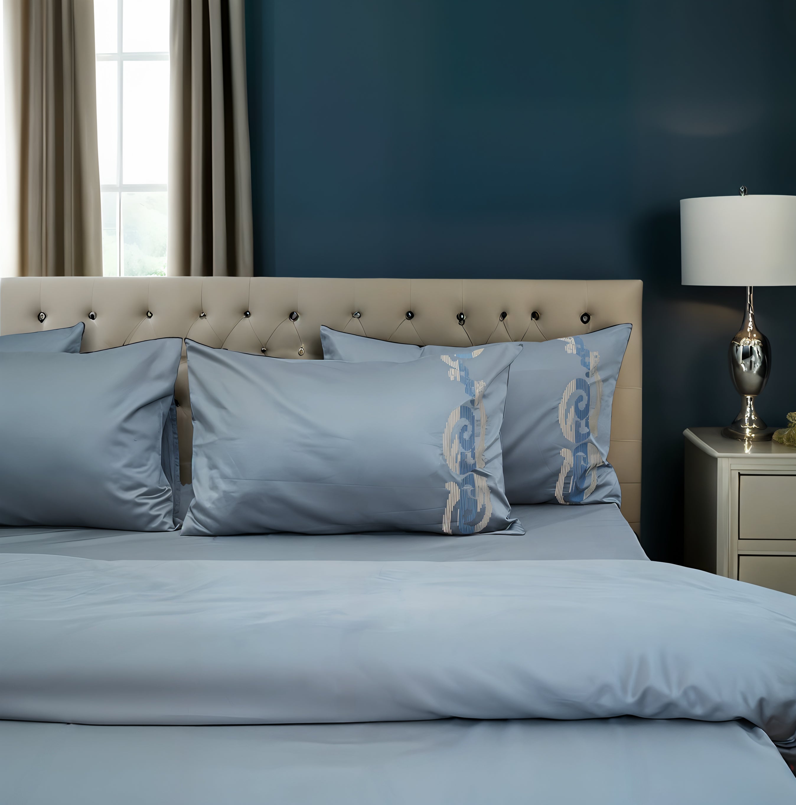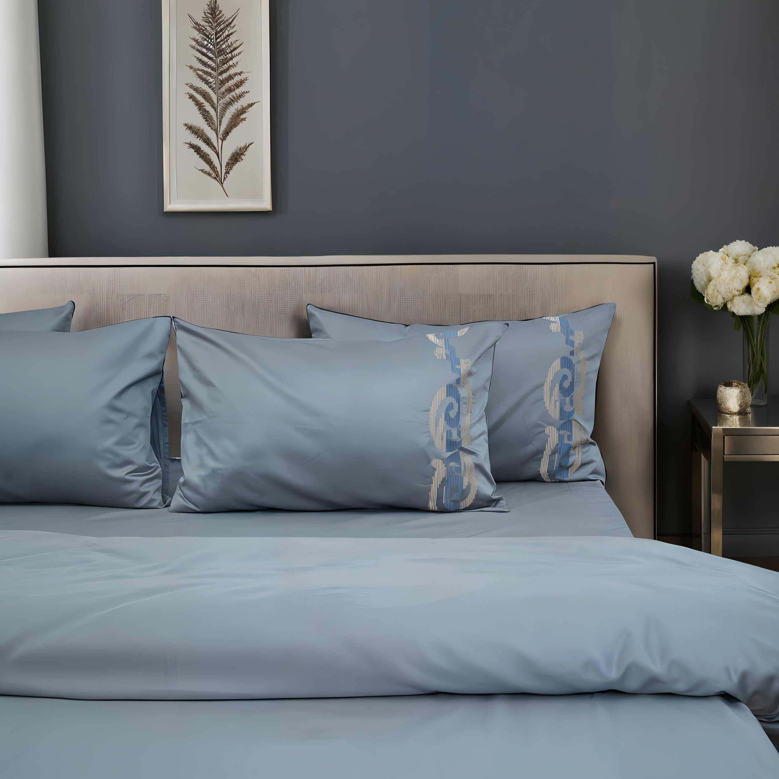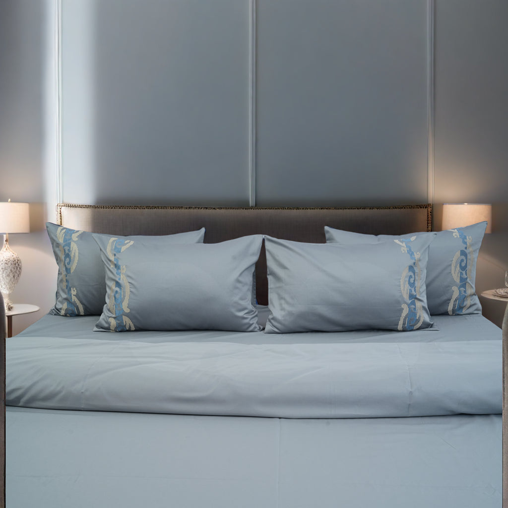 1 King Size Bedsheet + 2 Pillow Covers 400 Thread count Sateen Cotton Fabric with Embroidery Bedsheet...