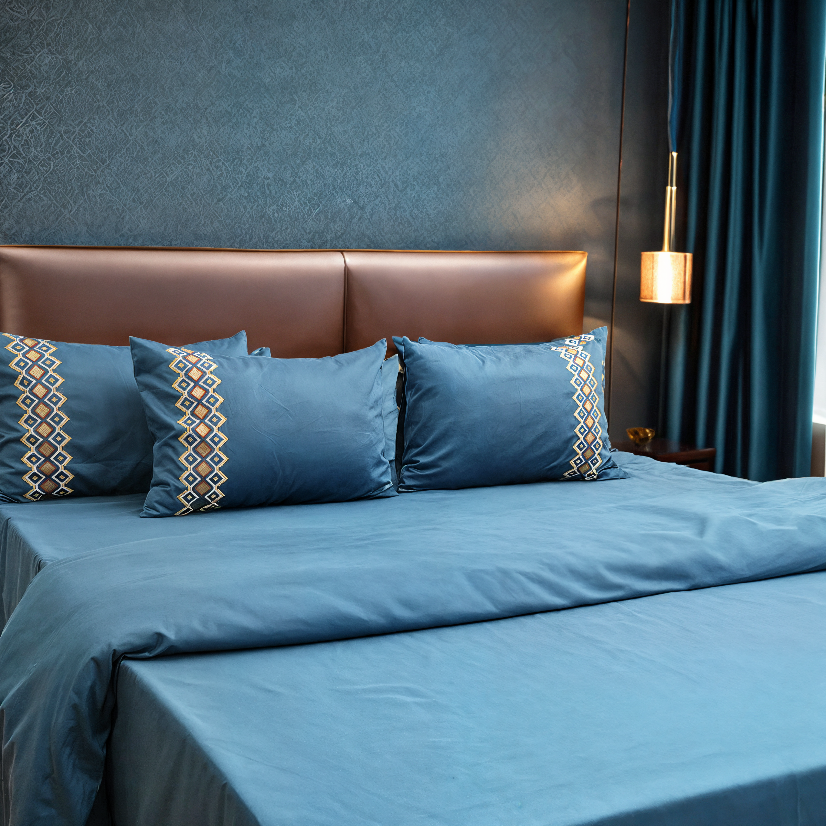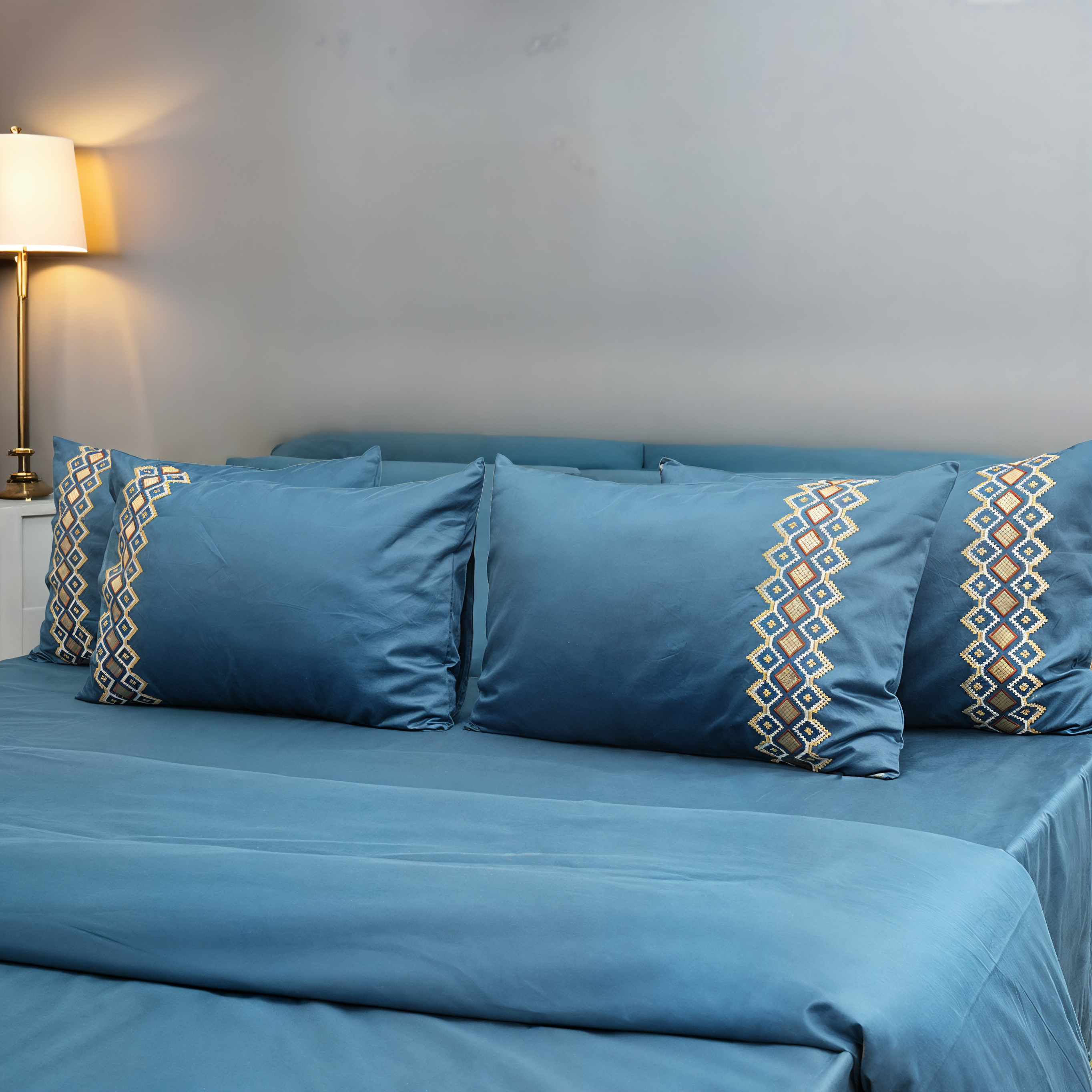 1 King Size Bedsheet + 2 Pillow Covers 400 Thread count Sateen Cotton Fabric with Embroidery Bedsheet...