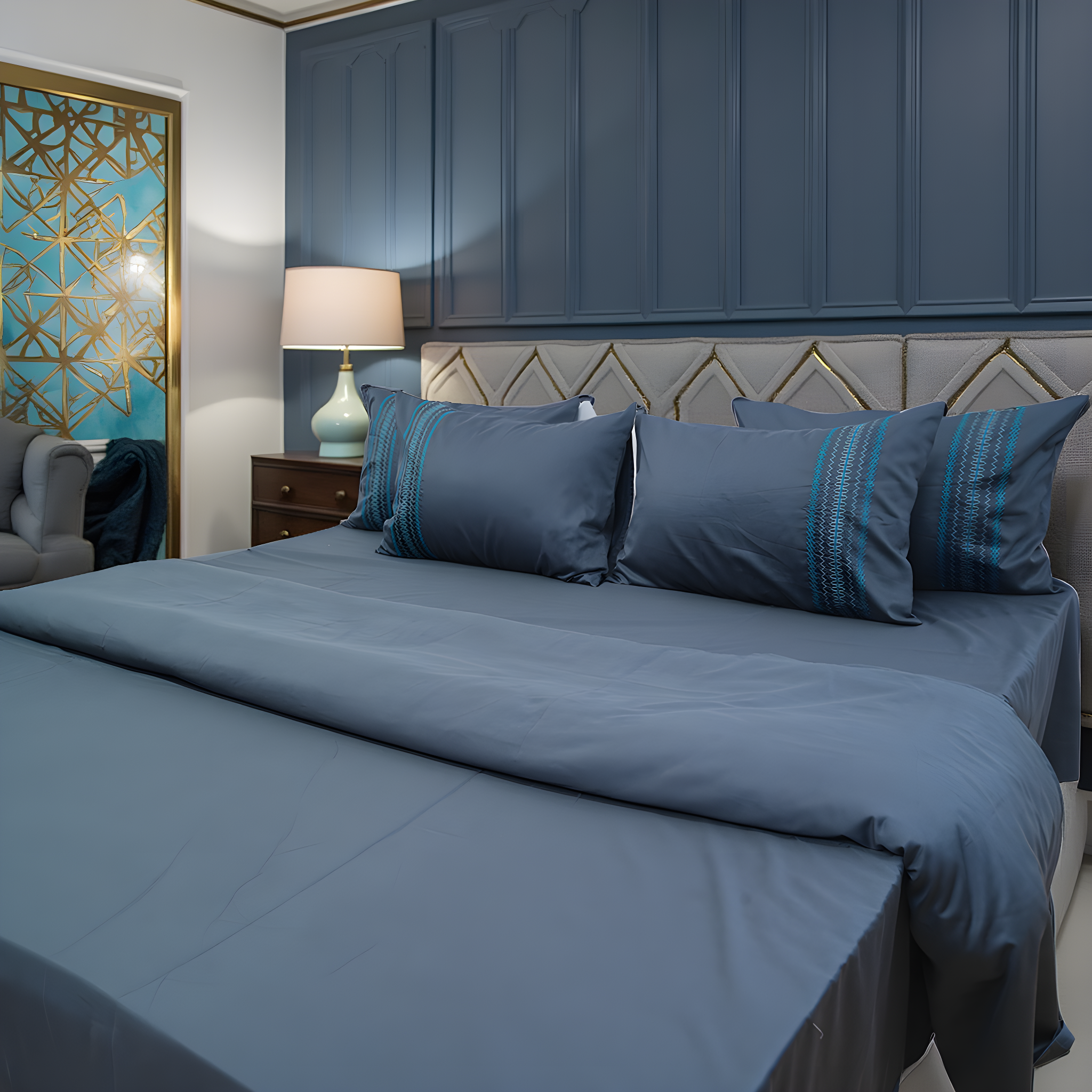 1 King Size Bedsheet + 2 Pillow Covers 400 Thread count Sateen Cotton Fabric with Embroidery Bedsheet...